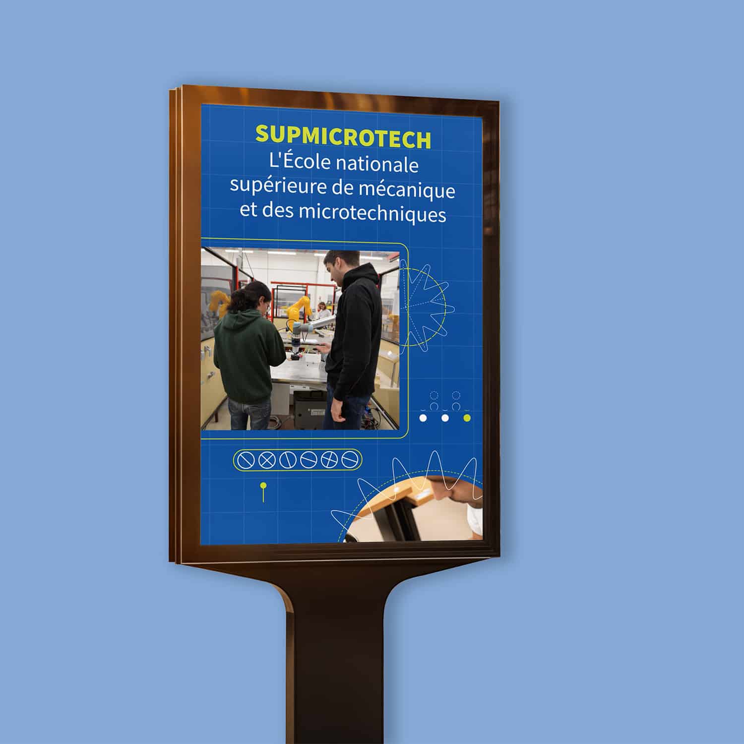 Pour sa journée portes ouvertes de janvier 2026, SupMicroTech souhaitait renouveler son kit de communication avec une affiche, des bâches et un motion design.