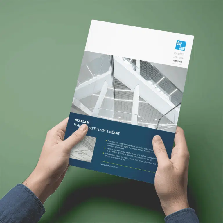 Durlumen, fabricant français de plafonds métalliques haut de gamme, poursuit sa collaboration avec notre agence à travers le conséquent chantier de refonte de ses fiches produit.