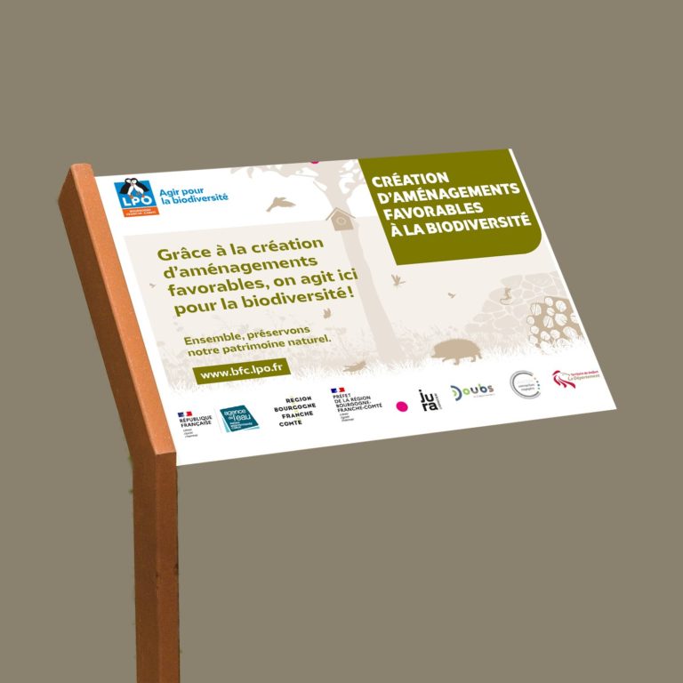 La Ligue pour la Protection des Oiseaux de Bourgogne-Franche-Comté est la branche régionale de l’association LPO qui a pour vocation de protéger les oiseaux et leurs habitats naturels mais également d’agir de manière plus large en faveur de la nature et de la biodiversité sur notre territoire. La LPO Bourgogne-Franche-Comté met au cœur de ses missions, la sensibilisation et l’éducation du public à la conservation des espèces menacées et à la préservation de leurs habitats naturels. Pour ce projet pédagogique, notre client souhaitait mettre en place des panneaux signalétiques pour communiquer sur les actions qu’il a concrètement mises en œuvre pour protéger la faune et la flore du lieu où se situe chaque panneau.