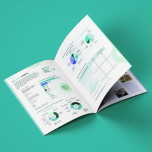 Nous avons conservé le format «journal» du Rapport d’activité mais choisi de donner la part belle à la couverture, comme une invitation à découvrir ce qui se cache à l’intérieur de cette publication. De nouvelles couleurs pétillantes et acidulées associées à de nouveaux éléments graphiques ponctuent le document et lui apportent la touche de fraicheur souhaitée. Une mise en page et des choix graphiques toniques au service d’un document riche en informations !