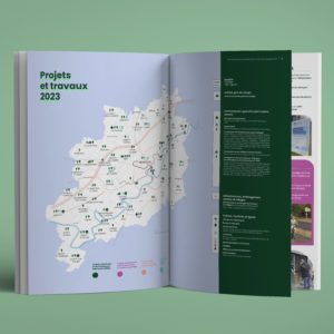 Grand Besançon Métropole (GBM) est la communauté urbaine autour de Besançon et dispose à ce titre de compétences en matière de développement économique, d’aménagement du territoire, d’habitat, de politique de la ville et de gestion de certains services publics sur les 68 communes qu’elle rassemble. Chaque année GBM émet un rapport d’activité pour présenter au grand public le bilan de l’année écoulée ainsi que les projets de celle à venir. Pour cette édition, notre client souhaitait un léger relooking afin de faire souffler une brise de nouveauté sur son support de communication.
